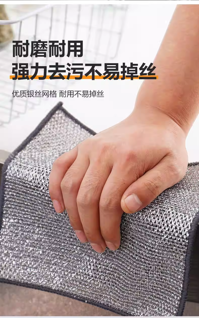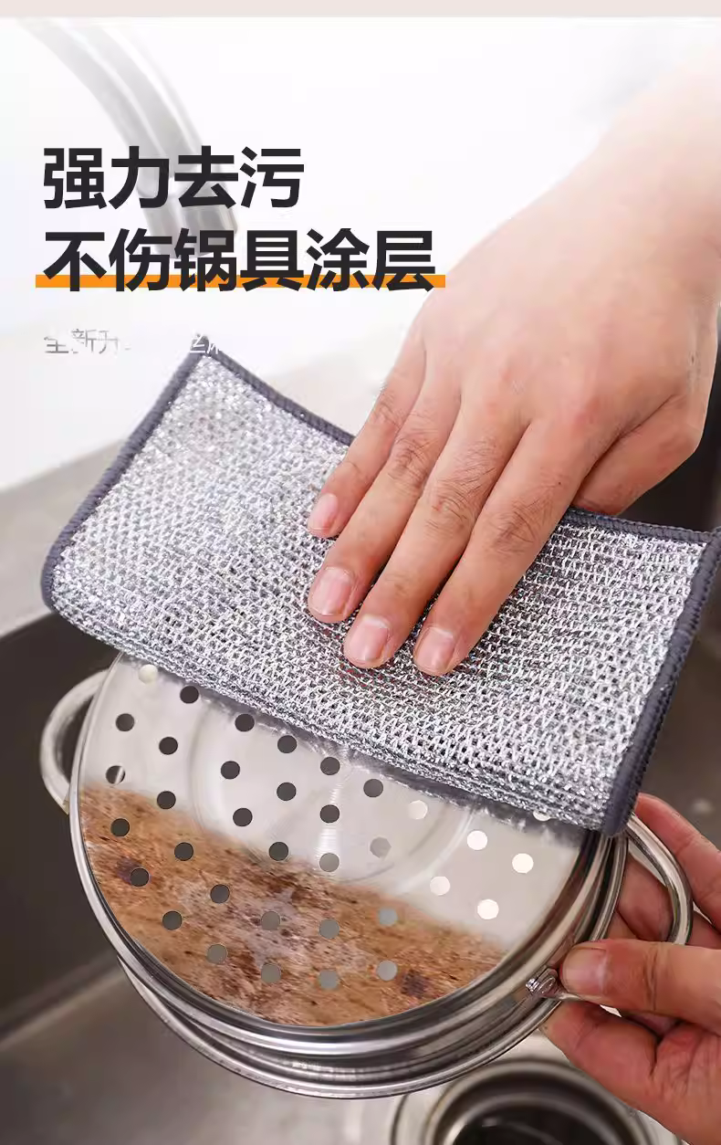 钢丝抹布家用洗碗布不伤锅具耐磨洗碗巾百洁布银丝抹布清洁去污 - 商品详情